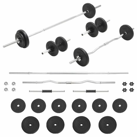 Deze veelzijdige halterset is een perfecte keuze voor mensen die op zoek zijn naar gevarieerde trainingsopties. Duurzaam materiaal: de set is gemaakt van verchroomd staal waardoor hij stevig en sta...