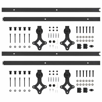 De levering bevat 4 schuifrails, 4 rollers, 4 deurstoppen, 2 vloergeleiders, 4 blokken tegen opspringen, 10 bevestigingsklemmen en andere noodzakelijke onderdelen. Opmerking: De deur is niet inbegrepen.
