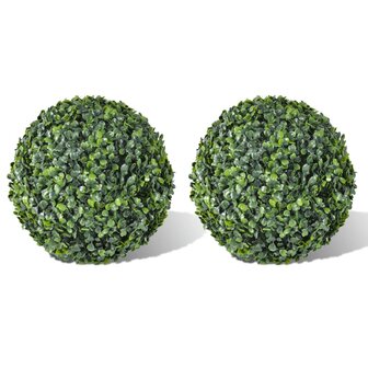 Deze set van 2 kunstbuxusbollen, elk met een diameter van 35 cm, is perfect voor zowel binnen- als buitengebruik. De bollen kunnen in potten of plantenbakken worden geplaatst of aan een ketting worden opgehangen. Je kunt de bollen ook versieren met kerstlichtjes om je interieur op te fleuren of je tuinlandschap te verbeteren.