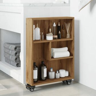 Opbergtrolley smal 48x13x68 cm bewerkt hout artisanaal eiken