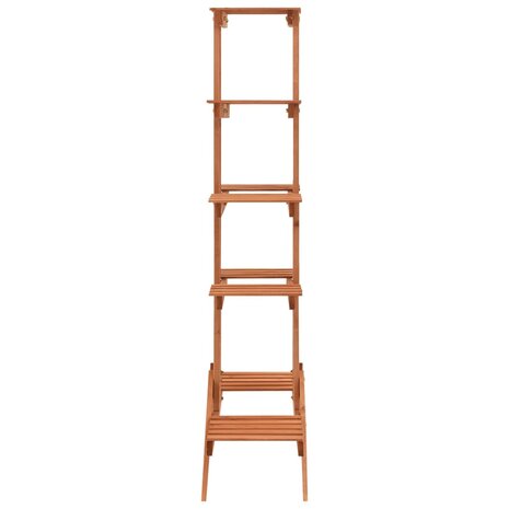De plantenhouder is gemaakt van massief vurenhout, waardoor hij stabiel en duurzaam genoeg is om het hele jaar door buiten te gebruiken. Het plantenrek heeft 9 schappen die voldoende ruimte bieden om je planten te ordenen.