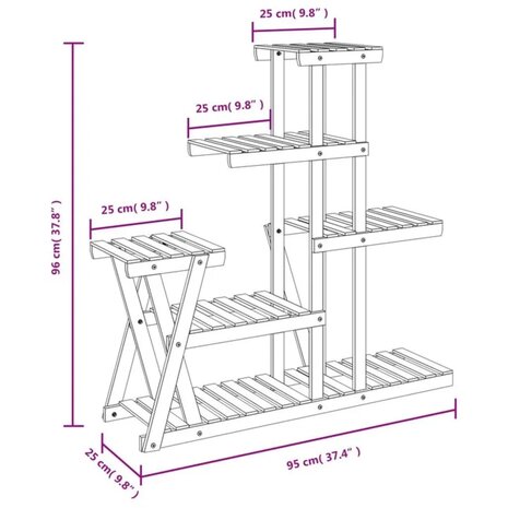 Plantenstandaard 95x25x96 cm massief vurenhout