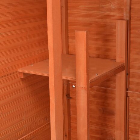 Deze houten gereedschapsschuur heeft een compact ontwerp en een elegante uitstraling, waardoor hij in elke tuin past. De schuur biedt een grote opslagruimte voor een breed scala aan gereedschappen en apparatuur.