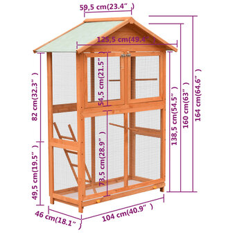 Deze hoogwaardige volière biedt voldoende bewegingsruimte voor je vogels, terwijl het strakke ijzeren gaas rondom helpt om onheil en onverwachte ongelukken te voorkomen. De constructie van het ijzeren gaas maakt het mogelijk om de vogels te observeren en garandeert de vogels een groot gezichtsveld en voldoende frisse lucht. Dankzij het stevig houten frame is de buitenvolière sterk en duurzaam. De groene, waterbestendige stof op het dak houdt regen buiten. Via een ladder kunnen de vogels gemakkelijk omhoog en naar beneden klimmen. Schoonmaak is eenvoudig dankzij de uittrekbare lade aan de onderkant van de vogelkooi.